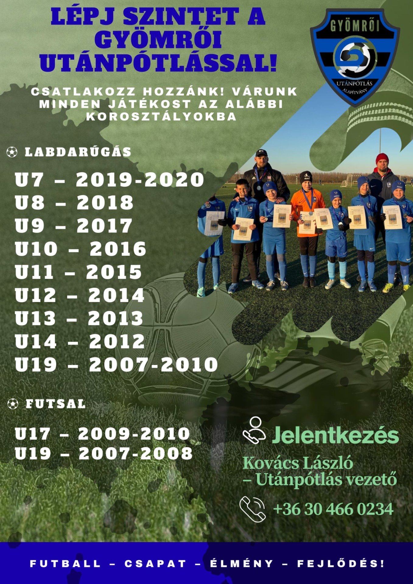 A Gyömrői Utánpótlás Alapítvány egy fiatal, ambiciózus labdarúgó klub, melyet 2015-ben alapítottak a helyi közösség támogatásával. Célunk, hogy minőségi és színvonalas képzést biztosítsunk a gyerekeknek és fiataloknak, akik szenvedélyesen szeretik a labdarúgást.